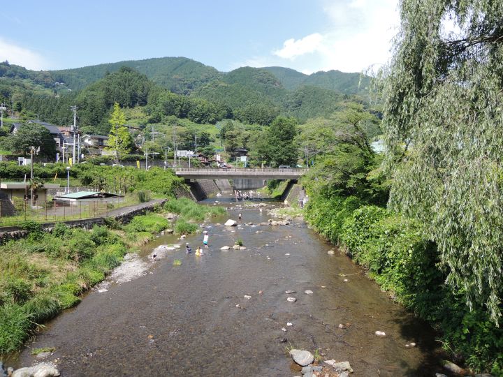 下界は35度を超える暑さ。子供たちが元気に川遊びをしていた。