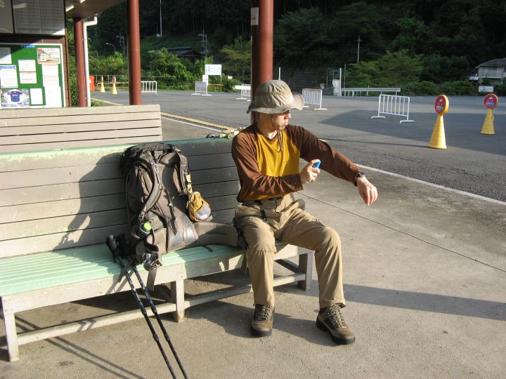 6:20 靴紐を締め、虫除けスプレーをして登山スタート。