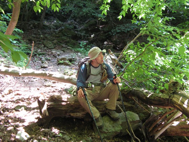 座りやすい倒木でしばし休憩。足腰に疲労がきて、かなりグロッキー状態だった。