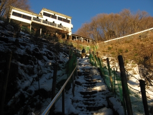 正丸峠手前の長い階段を上って、やっと日なたに出た。