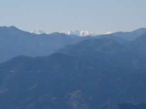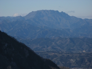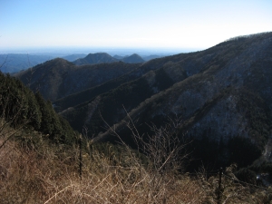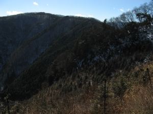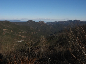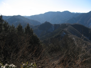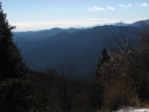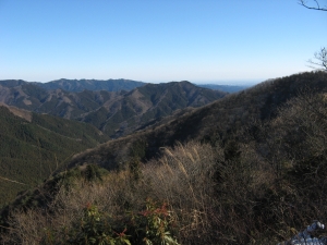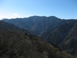 蔦岩山を過ぎた当たりから南東方面を眺める。武川岳から左にのびた稜線の奥に、伊豆ヶ岳と古御岳が見える。