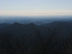 正丸峠の林道に出ると昭和天皇の「御展望記念碑」があり、都心の眺めがよかった。