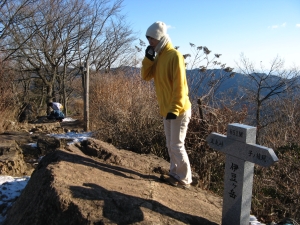 つづら折の山道を上り切って、伊豆ヶ岳の山頂に到着。男性二人組の先客がいた。