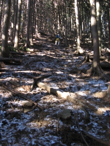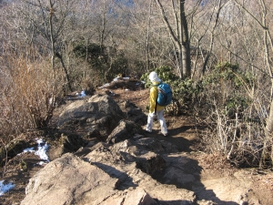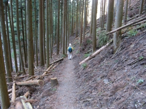 最初はちょっと荒れた感じのなだらかな山道が続いた。