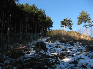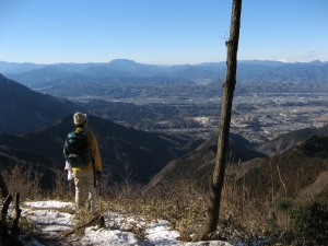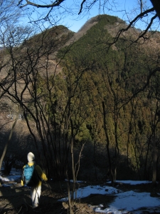 開けた林の切れ目に出ると、背後に伊豆ヶ岳が見えた。