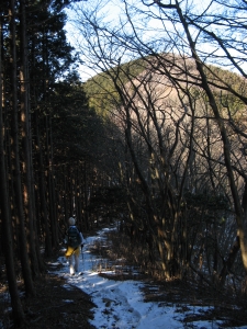 木立の間に武甲山を見ながら雪の道を下っていく。