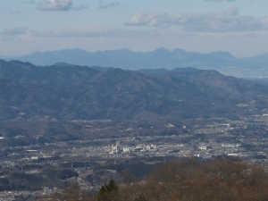 左奥に御荷鉾山と城峯山、中央に二子山、その後ろには榛名山も見えていた。