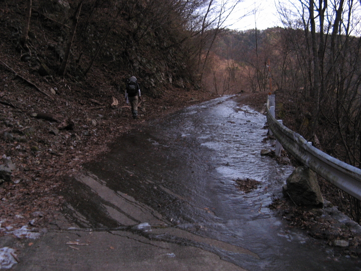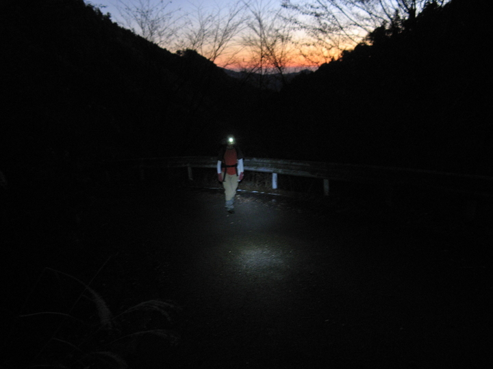 5:05 暗闇を出発。積雪や凍結箇所がほとんどなくなって、前回よりも格段に歩きやすかった。