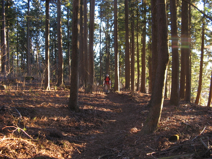 登山道に入って5分ほど経つと、東側の稜線から朝陽が昇ってきた。