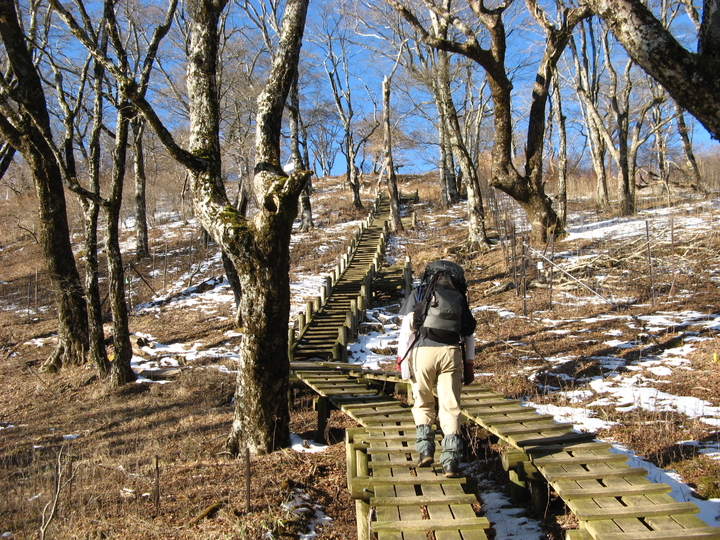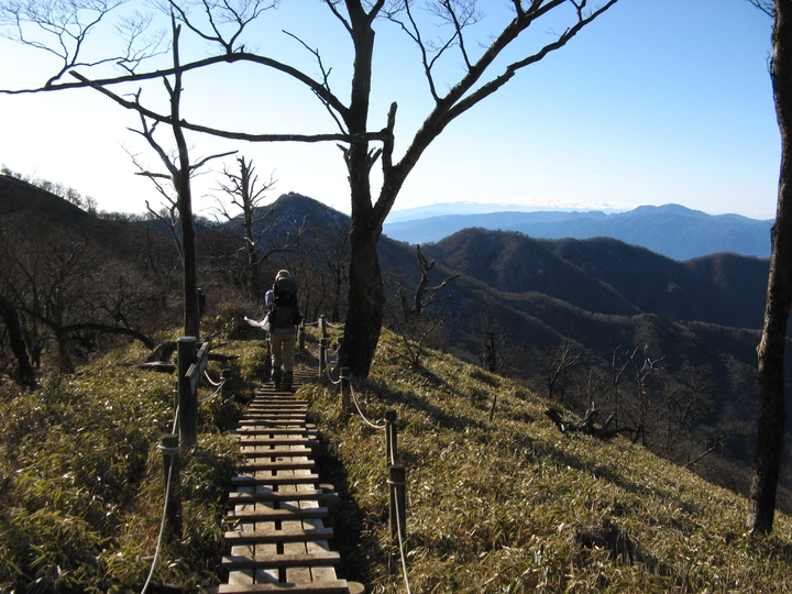 日高(1,461m)の小ピークを越えてさらに明るい樹林帯の尾根を進む。