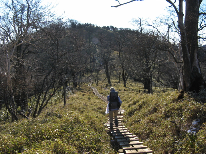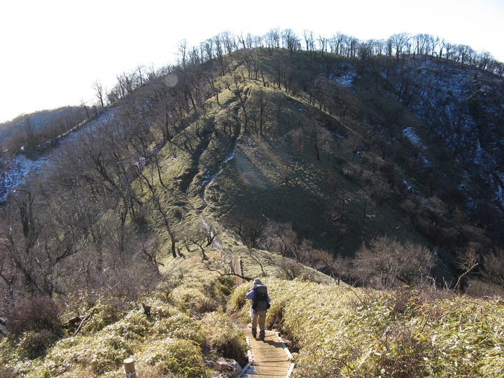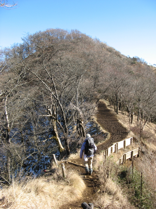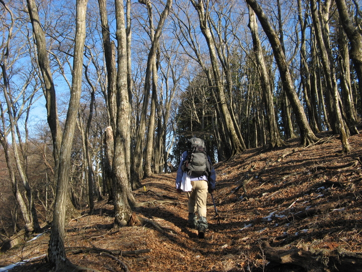 緩やかに下って上り返す。稜線上を抜ける風が冷たくて、手がかじかんだ。