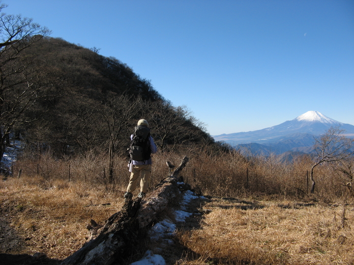鞍部まで下った背後に、塔ノ岳と富士山がよく見えた。