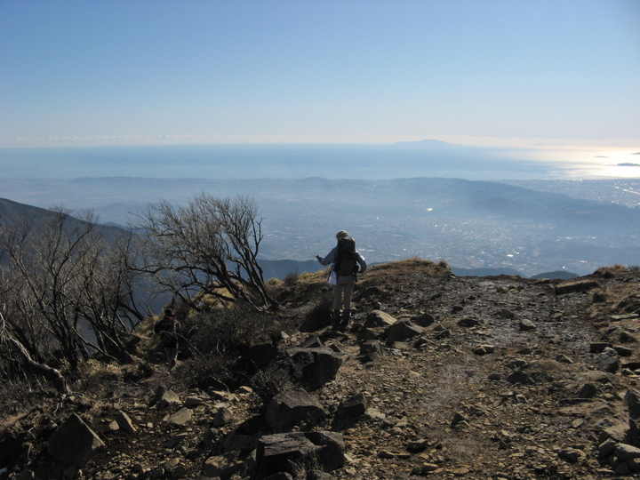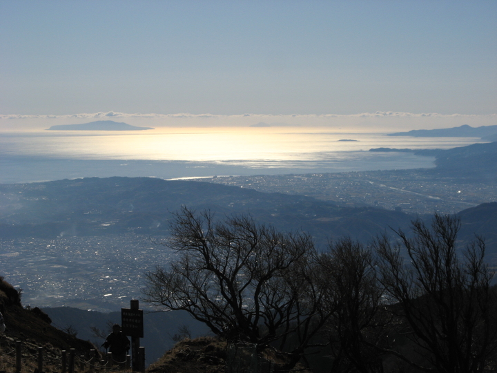 三原山の右には幽かに宮塚山も見えた。