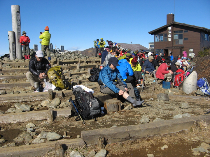 下山の準備を開始。そのうちハイカーの数がみるみる増え始めた。