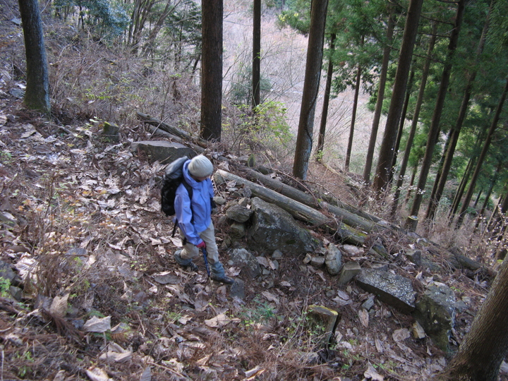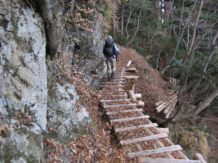分岐からは山腹につけられた崩落気味の道が続いた。よく整備されているので危険箇所はなし。