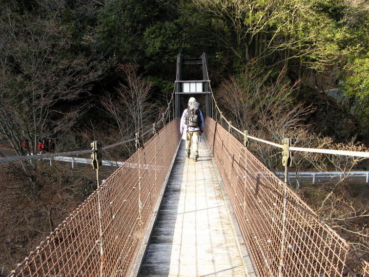 本谷川に沿ってしばらく進むと吊り橋が出てくる。