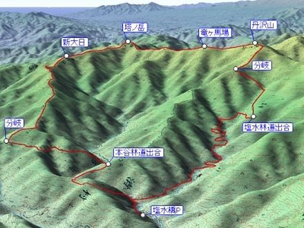 塩水橋P 5:05 ⇒ (道迷い10分) ⇒ 塩水林道出合 6:50 ⇒ 天王寺尾根分岐 8:00 ⇒ 8:40 丹沢山 9:00 ⇒ 9:30 竜ヶ馬場 9:35 ⇒ 10:20 塔ノ岳 11:55 ⇒ 新大日 12:40 ⇒ (休憩5分)⇒ 分岐 14:15 ⇒ 本谷橋 14:55 ⇒ 塩水橋P 15:20