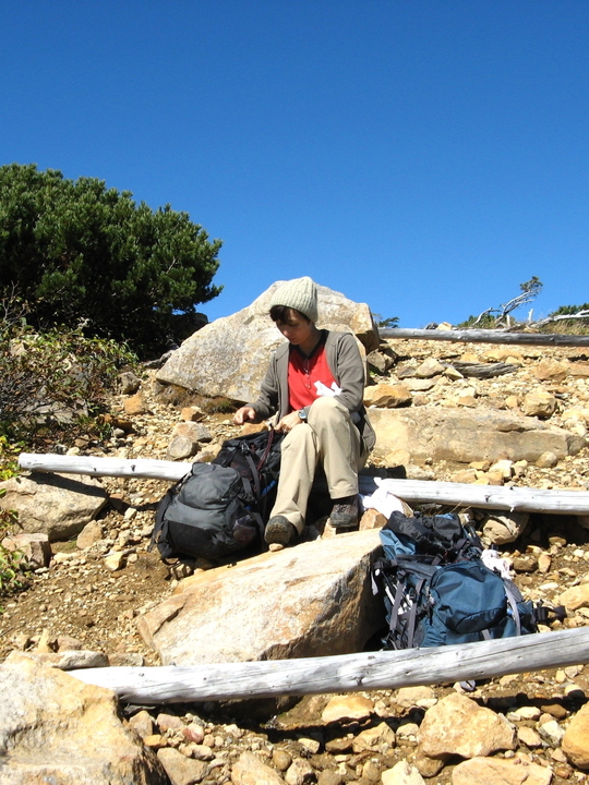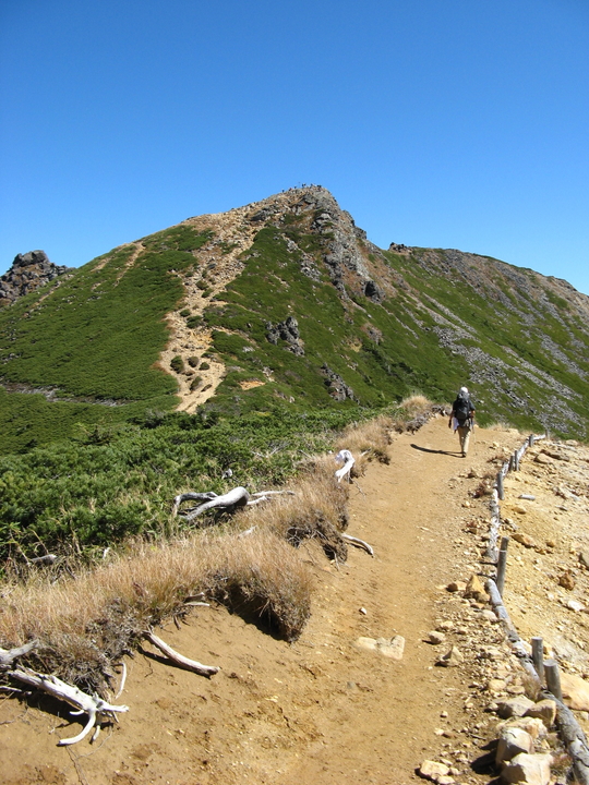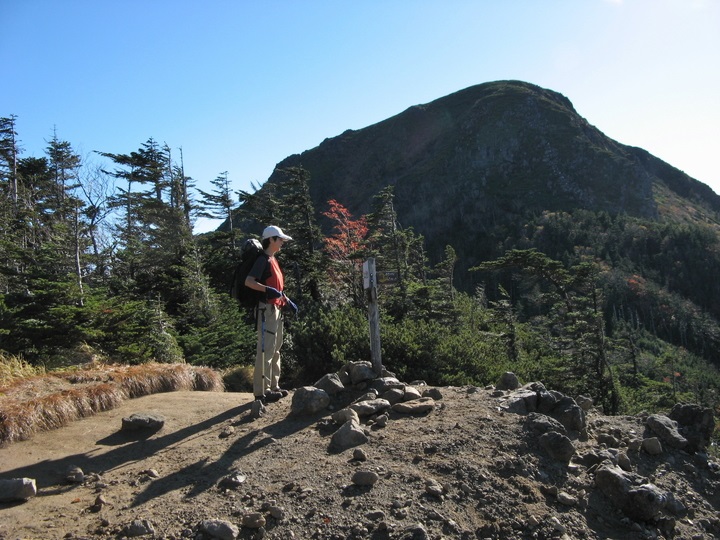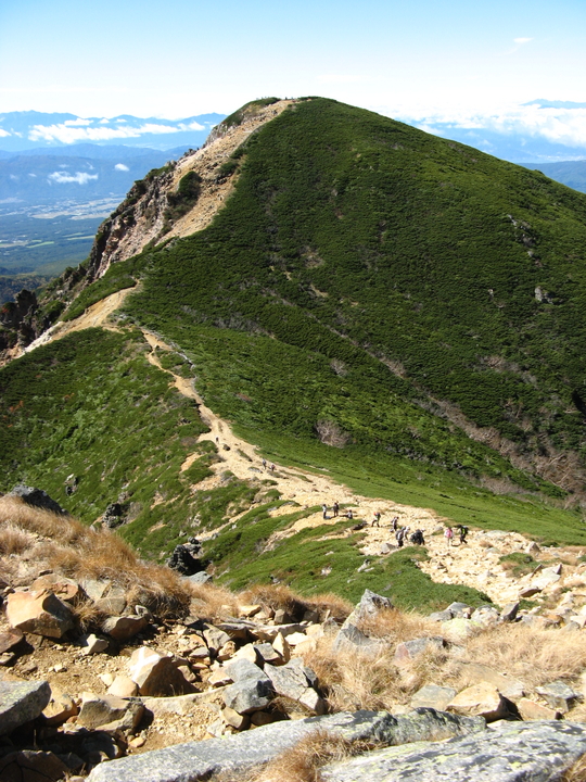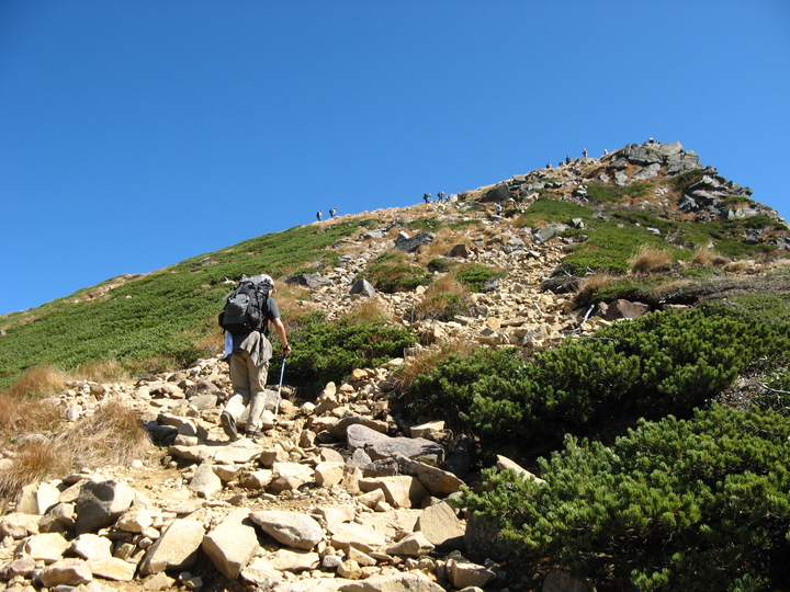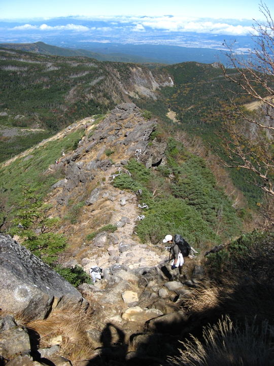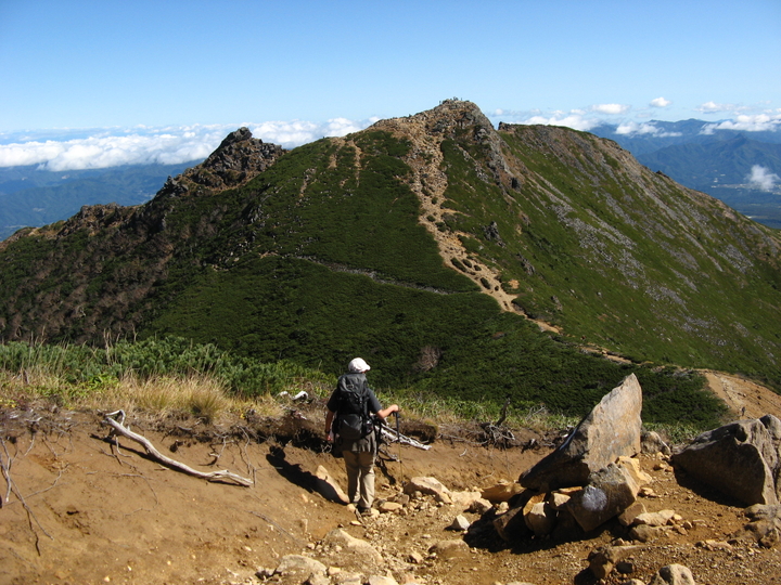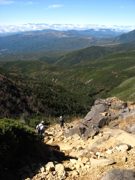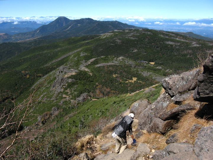 露岩とハイマツ帯を出入りしながら下って行く。