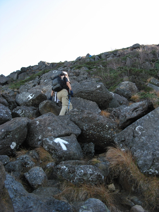 山頂直下は大きな岩ゴロの急坂が続いた。