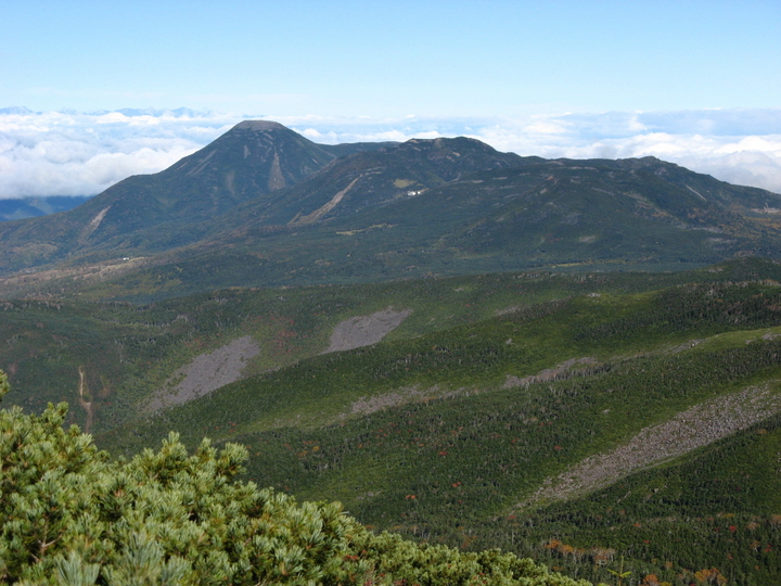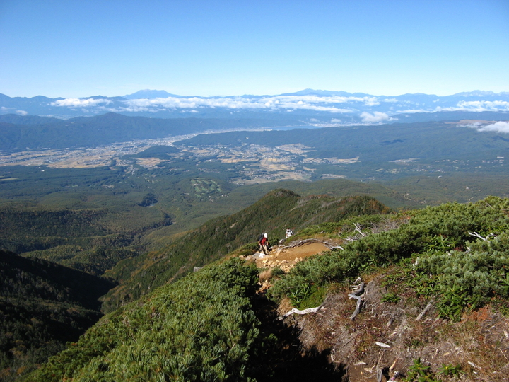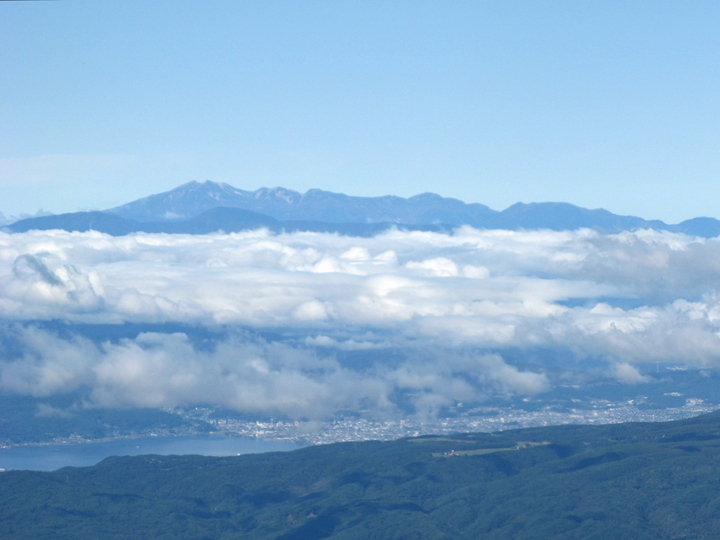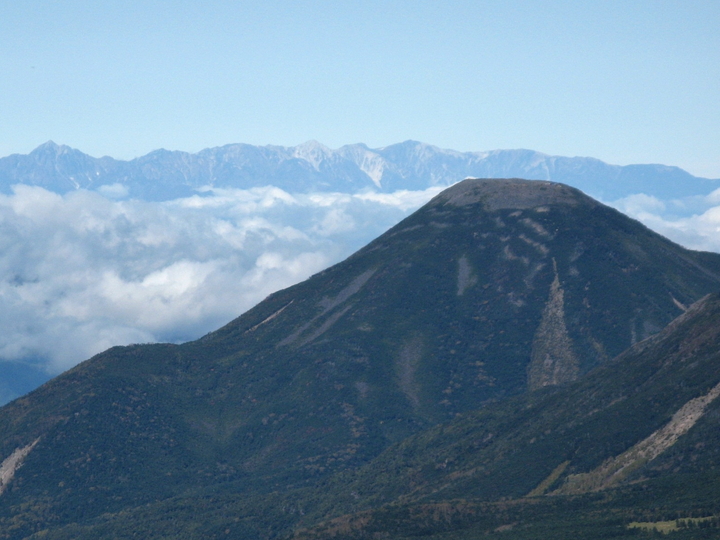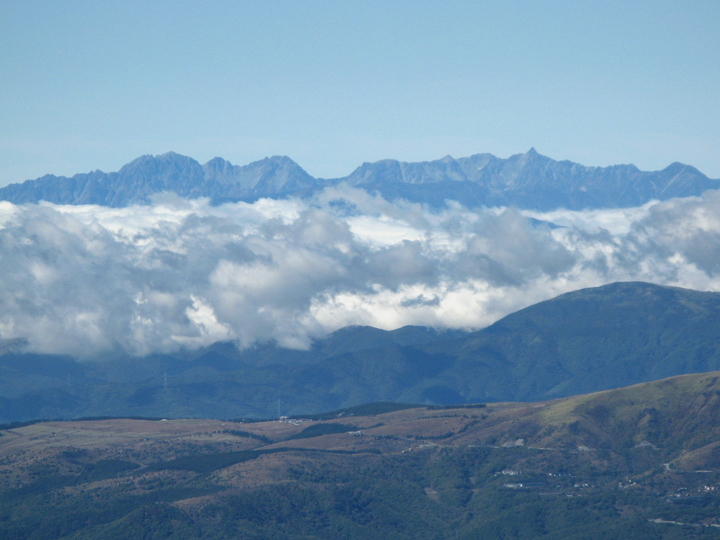 北側には蓼科山、北横岳など北八ヶ岳の山々が見えた。