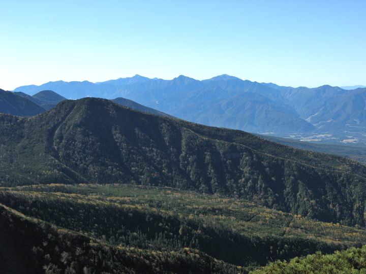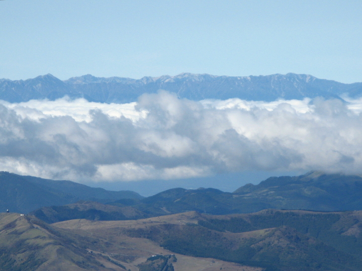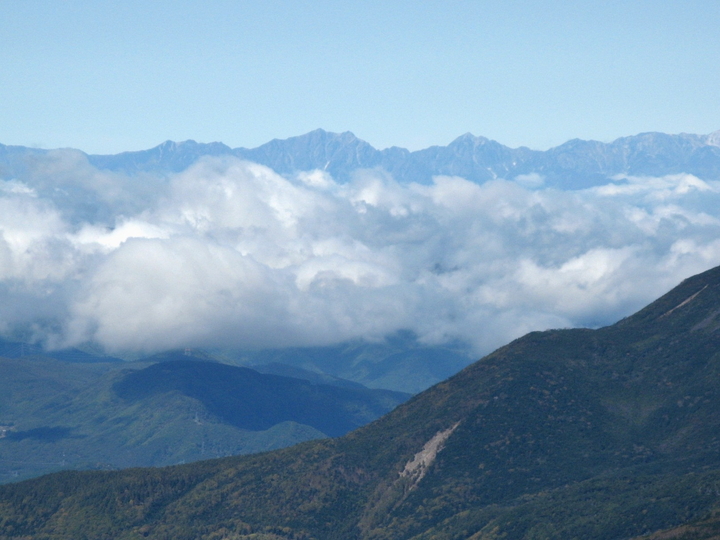 西南西に見えた中央アルプス。左に空木岳、右に木曽駒ヶ岳。