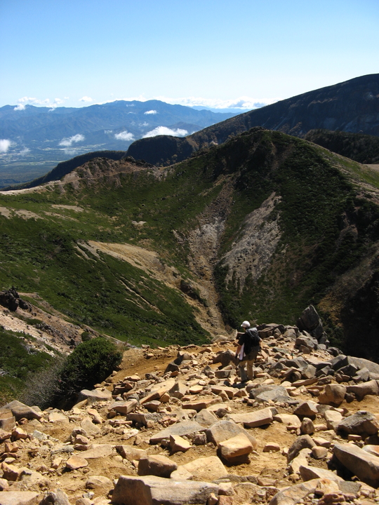 北側の展望を眺めながら岩礫のガレ場を下る。