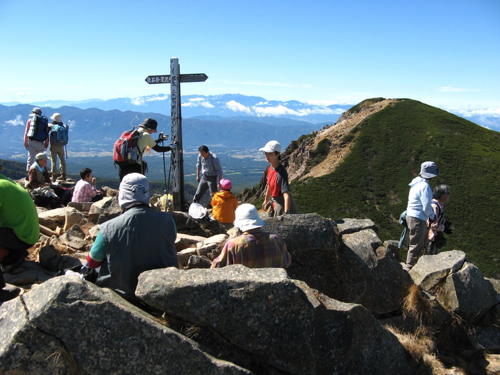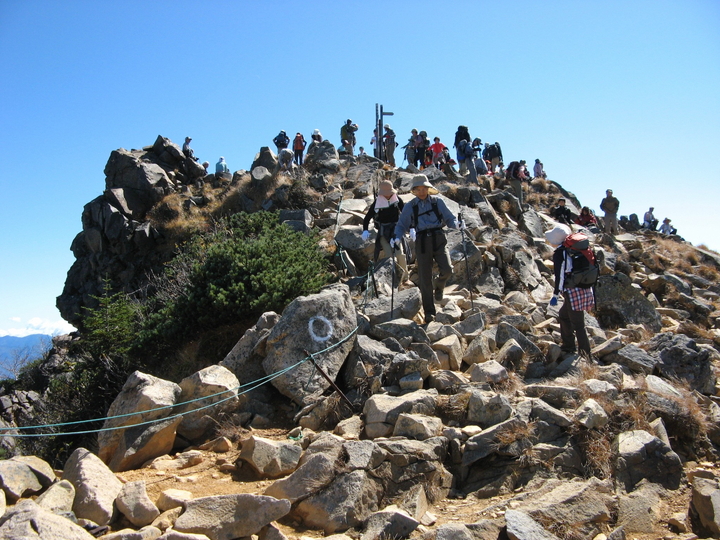 東天狗岳の山頂は登山者でひしめき合っていた。