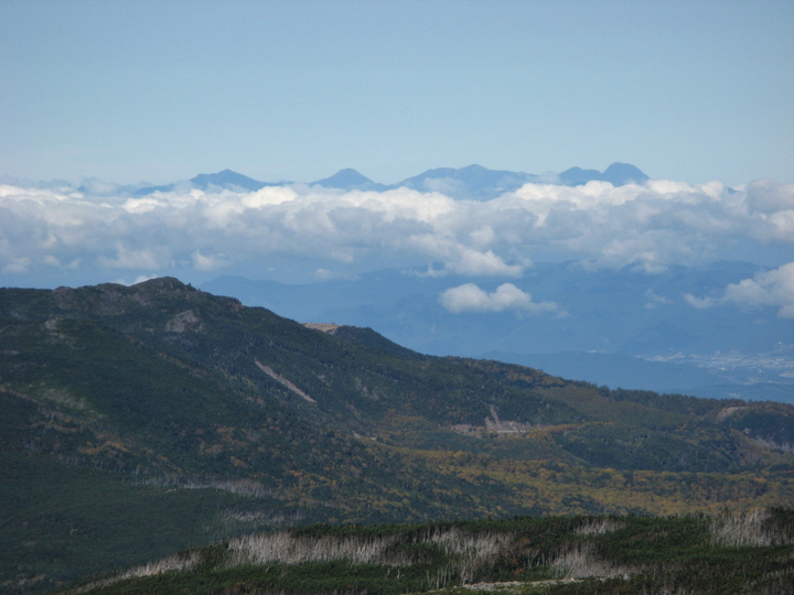 北八ヶ岳の右奥には戸隠山、焼山、火打山、妙高山の山頂部が見えた。