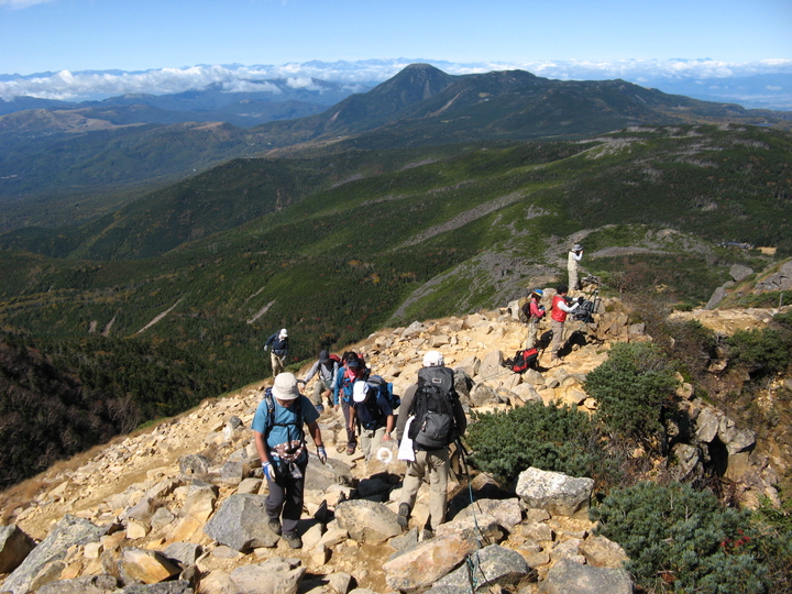各ルートから上ってくる登山者が後を絶たない。