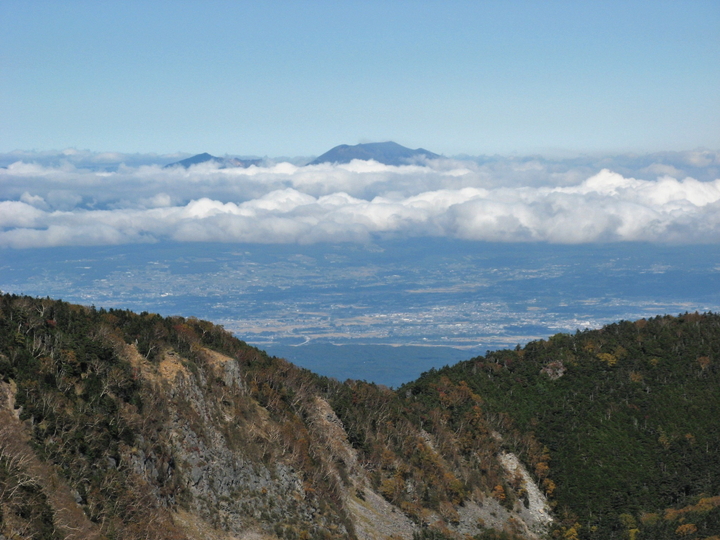 北東方面に広がっていた雲海が少し引いて、荒船山が見えた。