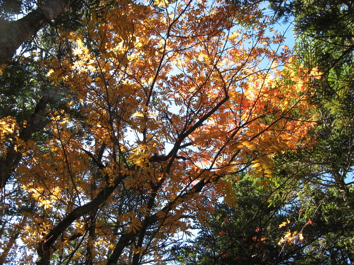 木道の周囲は紅葉が始まっていた。