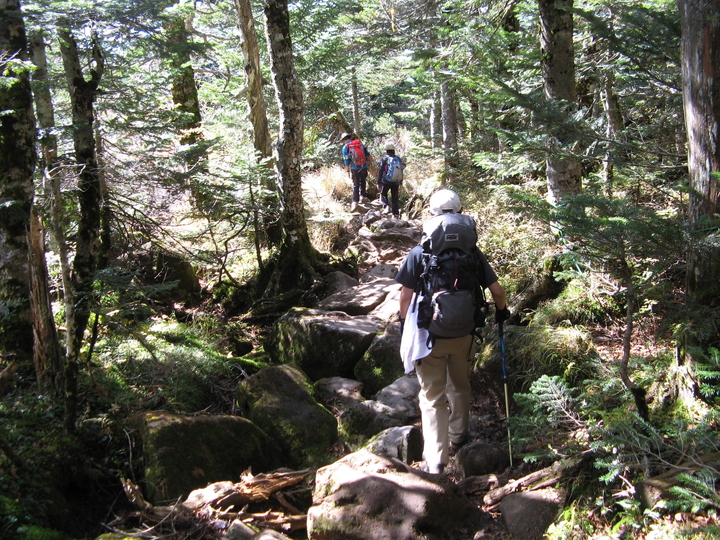しばらく休んで再スタート。今度は苔むした石がゴロゴロしていて歩きづらかった。