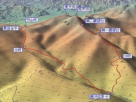 唐沢鉱泉 5:55 ⇒ 分岐 6:50 ⇒ 7:30 第一展望台 7:55 ⇒ 8:20 第二展望台 8:25⇒ 9:05 西天狗岳 10:40 ⇒ 11:00 東天狗岳 11:50 ⇒ 中山峠 12:45 ⇒ 12:50 黒百合平 13:00 ⇒ 分岐 13:45 ⇒ 唐沢鉱泉 14:40