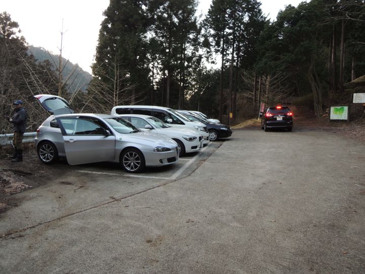 県民の森駐車場は林道から少し上がったところにあり、行き過ぎるところだった。出発する頃には狭い駐車場は満車となって、早くも路駐する車が出始めていた。