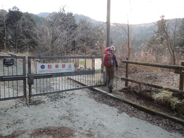 ゲート前のスペースは車で一杯。その先の林道も路駐車が多かった。