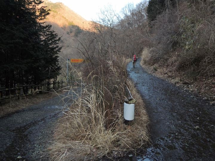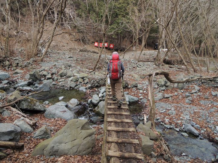 四十八瀬川に架かる勘七橋を渡って次のゲートを過ぎると分岐となる。左へ大きく曲がって鍋割山方面へ。
