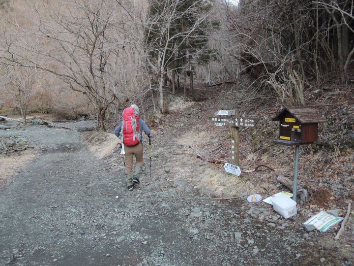 13:35 勘七沢を渡り、すぐ先の登山カードポストを通過。