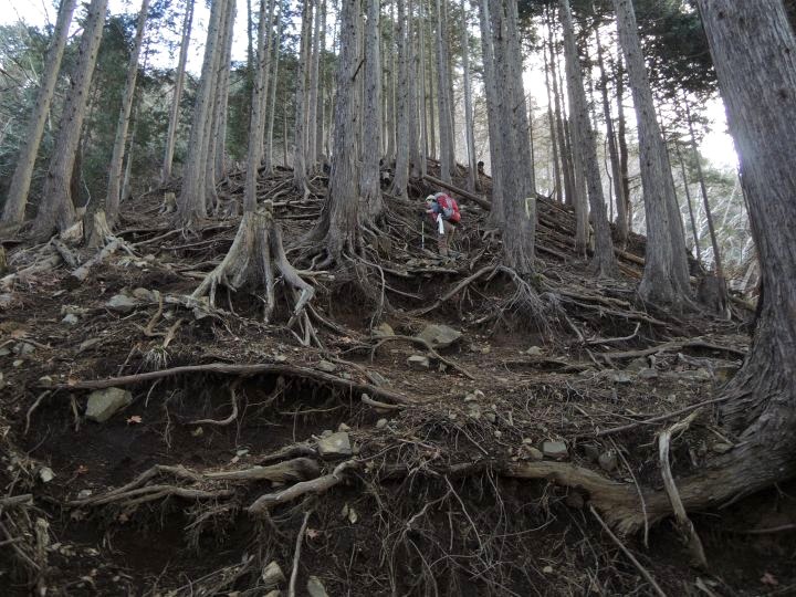 後沢乗越で尾根を降りて、二俣方面へ九十九折りに進む。