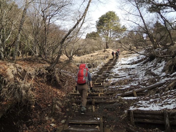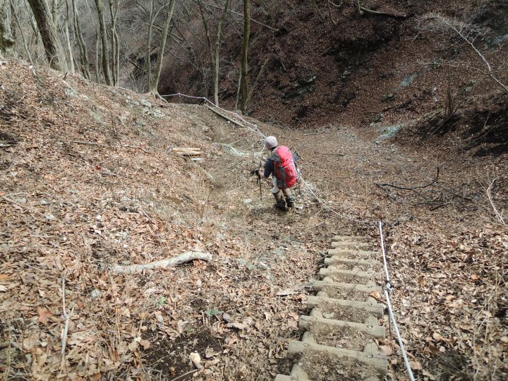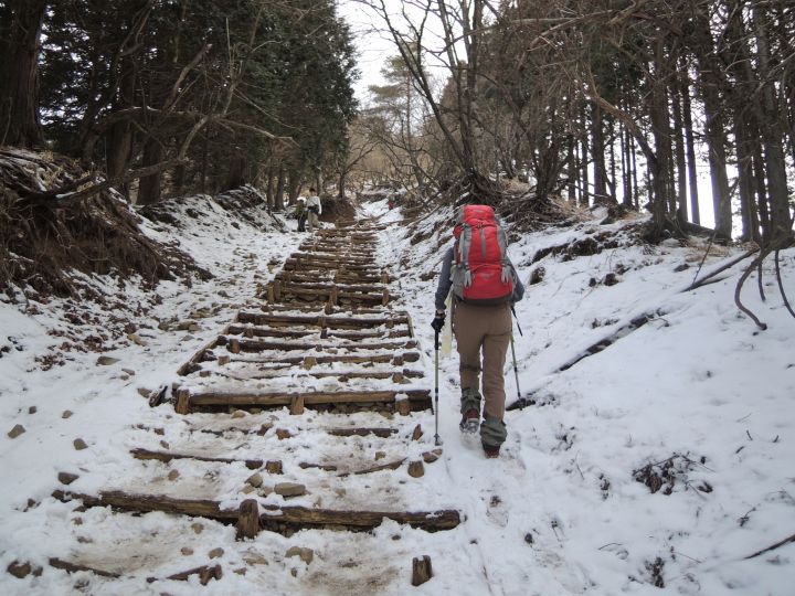 大倉尾根に合流してから一気に登山者の姿が増えた。延々と続く通称「バカ尾根」の木段を上る。