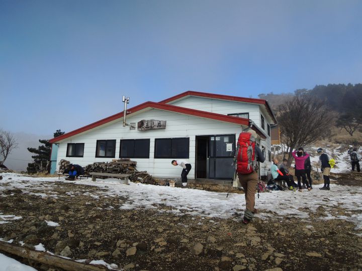 8:15 堀山の家に到着。何人かの登山客が休憩していた。