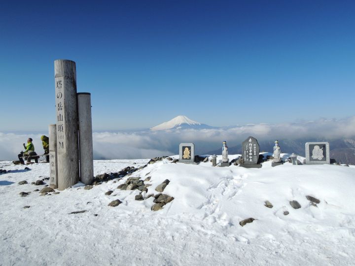 これだけ雪のある塔ノ岳山頂は初めてだったが、真っ白な雪山の眺めには格別の美しさがあった。