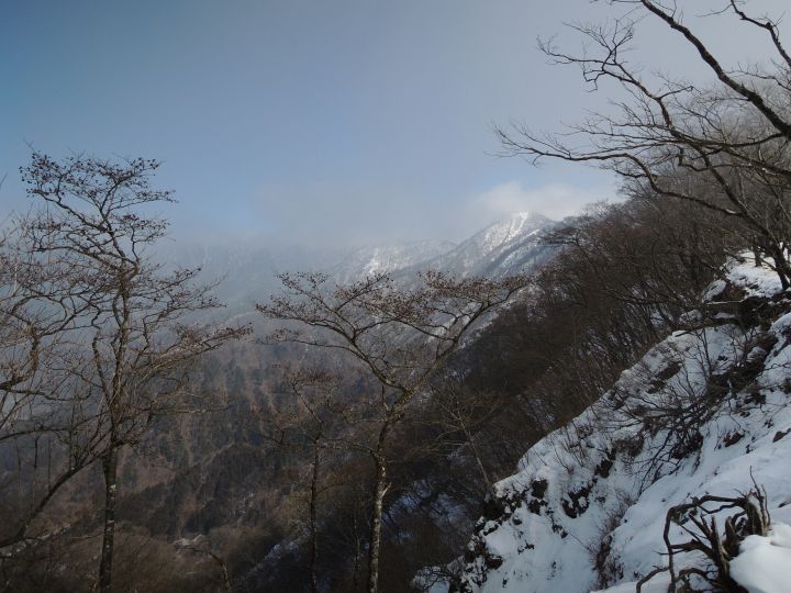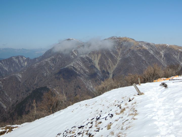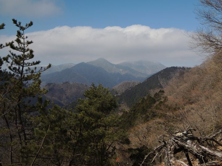 北西方面には同角ノ頭が見えた。その右の檜洞丸は雲に覆われていた。