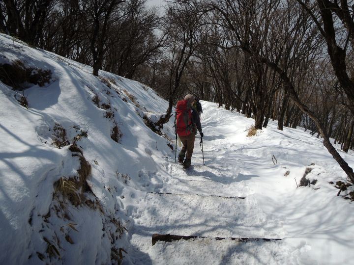 冬枯れしたブナの木々を見ながら、ながらかな鍋割山稜を進む。