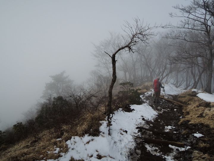 10:45 下山開始。雲の中へ降りて行くような感じだった。
