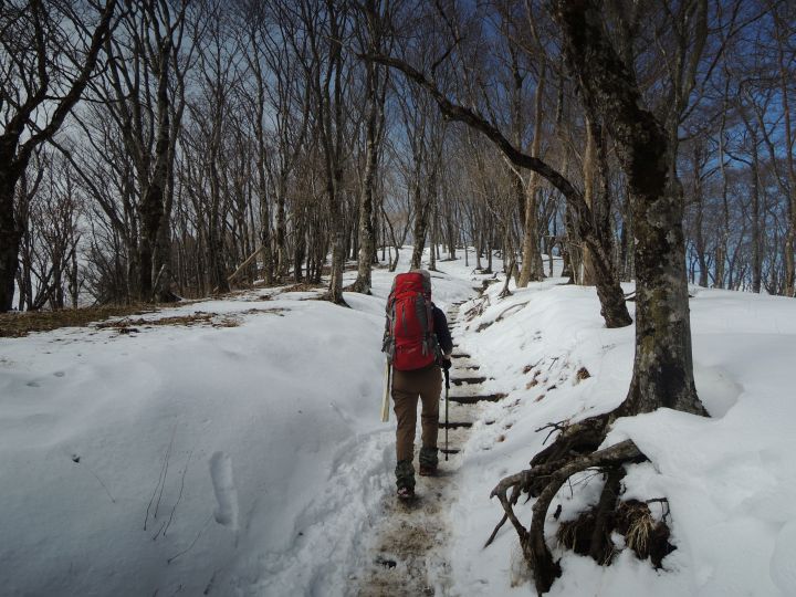 花立山荘を過ぎると完全なスノーハイクとなった。