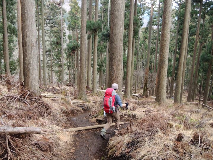 しばらく下ると間伐された植林帯に入った。枝打ちもされて手入れが行き届いていた。