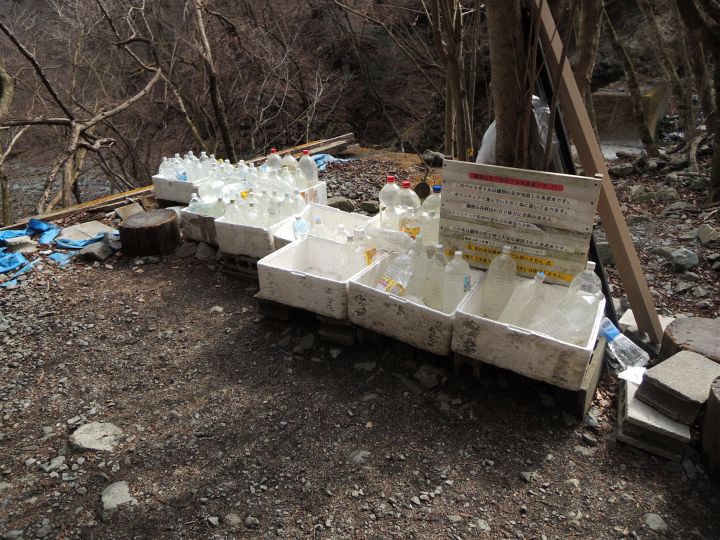 13:10 鍋割山荘の資材デポ地点を通過。こちら側から登って山荘を通るハイカーは、ボトルの水をボランティアで持って上がるというシステム。