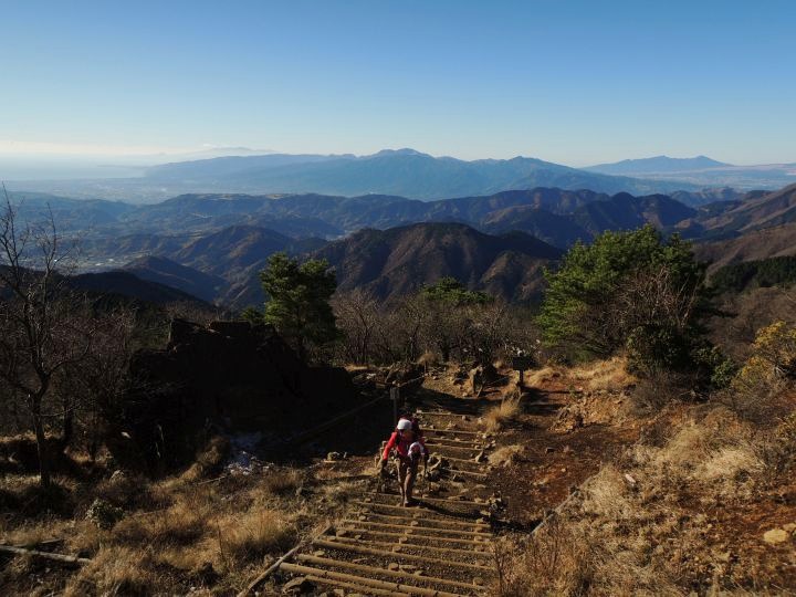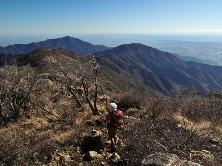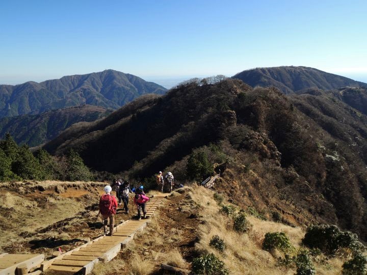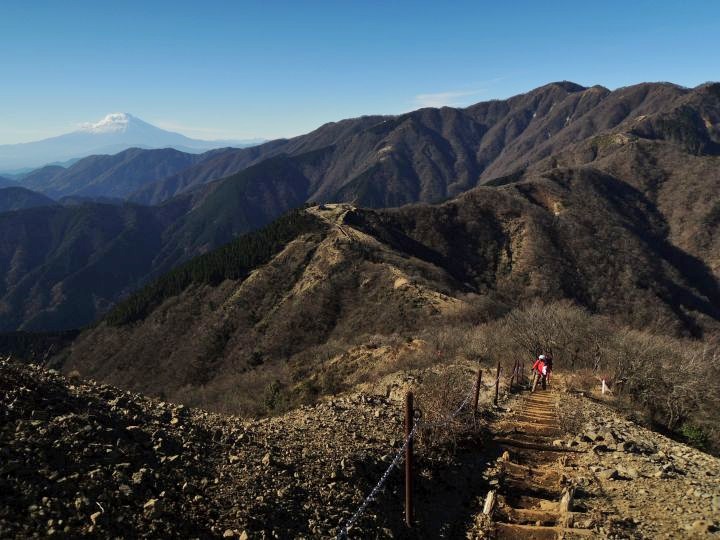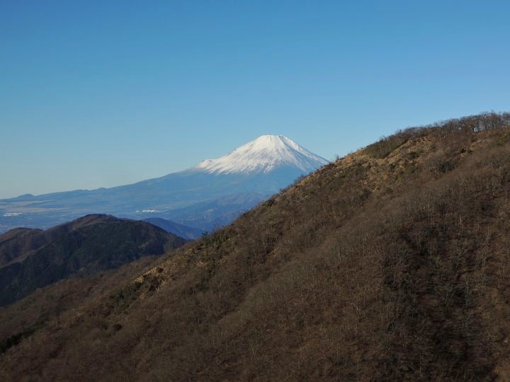 3時半起床、4時出発。圏央道から東名に乗り、5時40分大倉に到着。昼頃までは強風が吹くとの予報だったが、稜線に出ても風はそれほど強くはなく、思った以上に暖かかった。終日素晴らしい天気に恵まれて、富士山や南アルプスなどの展望を楽しめた。午後になっても上ってくる登山者が大勢いて、山荘泊まりの団体も多いように見うけられた。子ども連れや赤ちゃんを背負った人もいて、人気の山であることを改めて実感した。