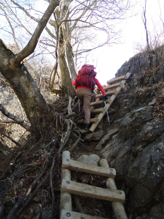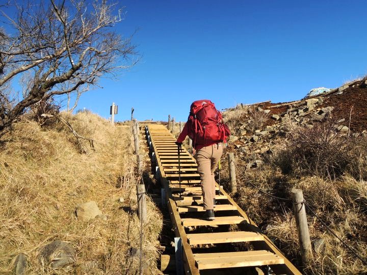 山頂直下の階段を上る。かなり高齢のおばあさんハイカー2人組に抜かされて、その健脚ぶりに驚いた。