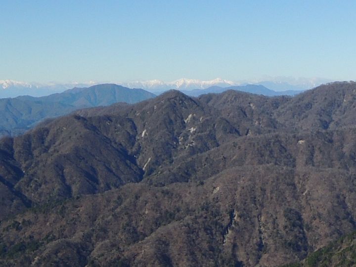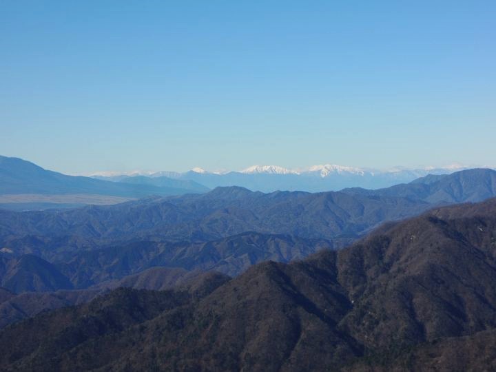 御正体山の左奥には、聖岳、赤石岳、悪沢岳、塩見岳などがくっきり見えていた。